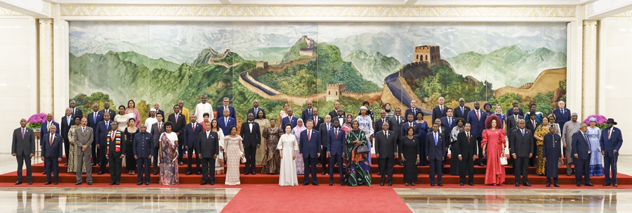 ??9月5日上午,國家主席習(xí)近平在北京人民大會堂出席中非合作論壇北京峰會開幕式并發(fā)表主旨講話。這是開幕式前,習(xí)近平同出席峰會的外方領(lǐng)導(dǎo)人集體合影。新華社記者 饒愛民 攝