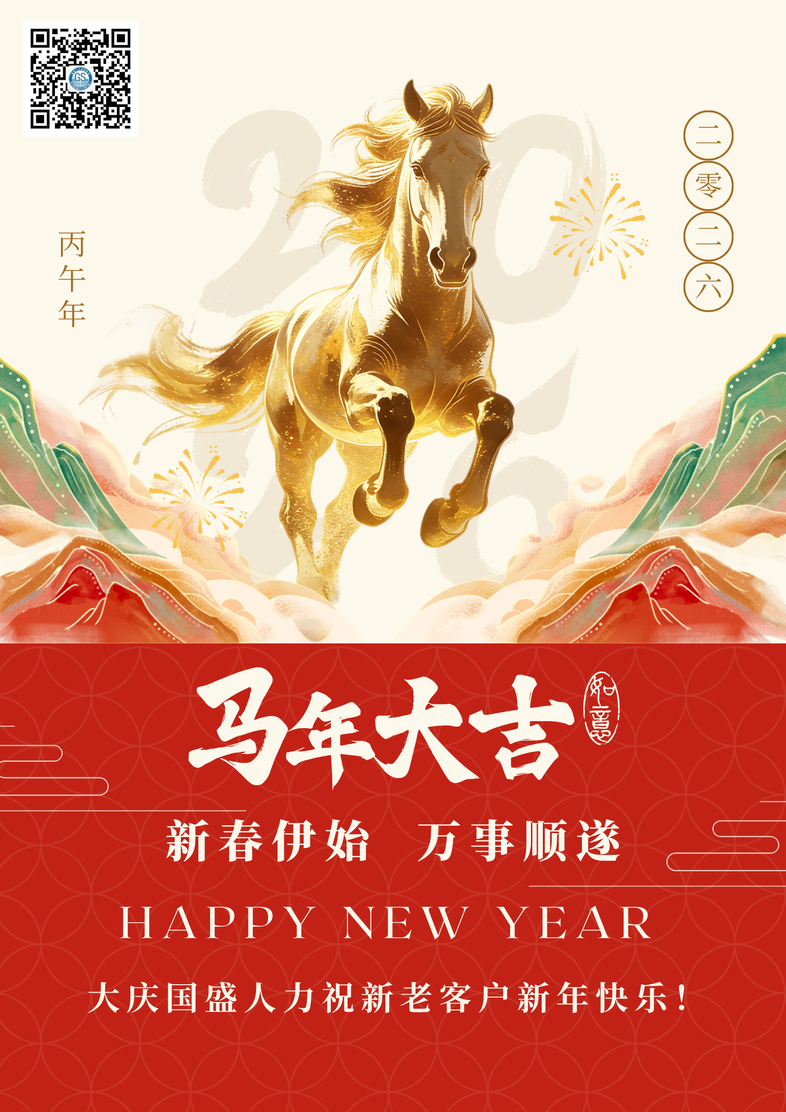 值此丙午馬年新春佳節(jié)之際,大慶國(guó)盛人力全體同仁,向您致以最誠(chéng)摯的問(wèn)候和最美好的祝福!
