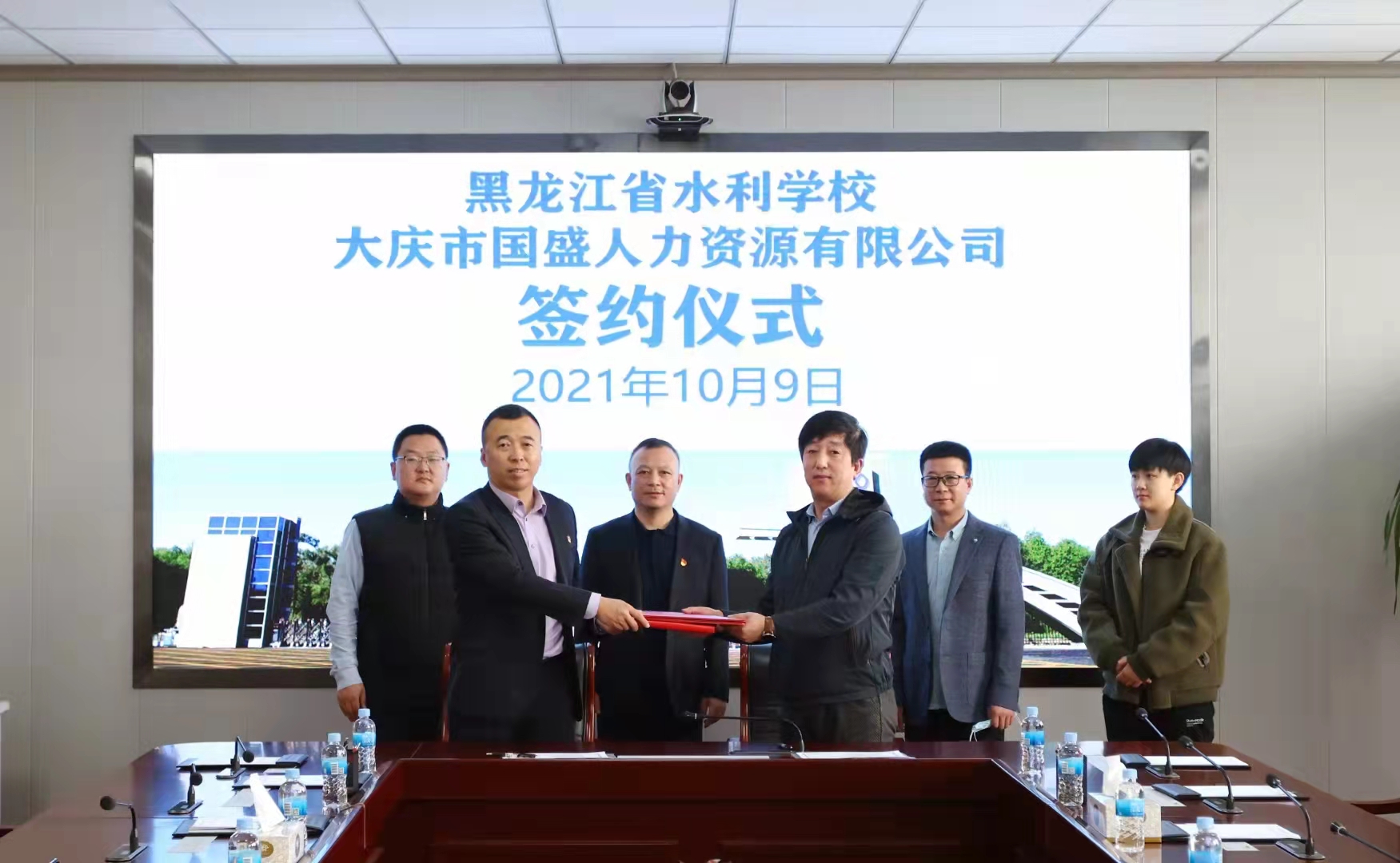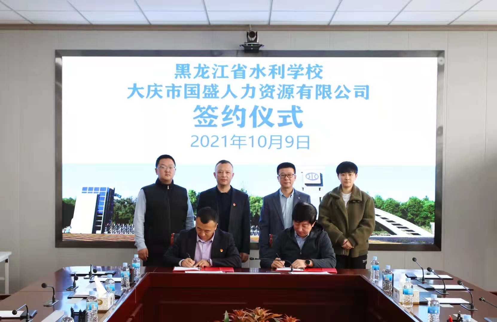 2022年3月8日上午,大慶國盛人力公司和省水利學校舉行了簽約儀式(此次簽約是2021年因疫情影響補簽的),省水利學校校長王永平、副校長袁峰、國盛人力公司經(jīng)理牟華東等相關人員參加了簽約儀式。